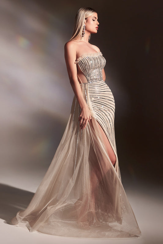 Rhinestone Sexy Fitted Strapless Gown CD991