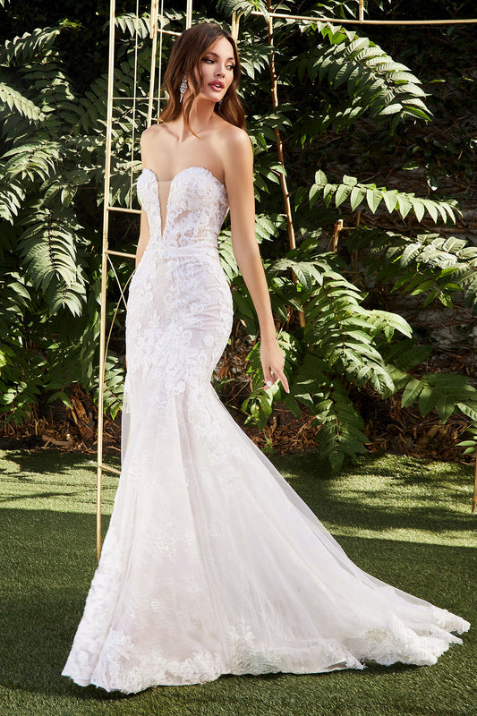 Sequin Deep V-Neck Trumpet Slit Gown CDS359