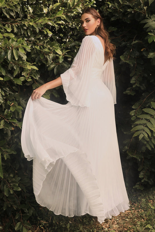 White Bell Sleeve Pleated A-Line Gown CD242W